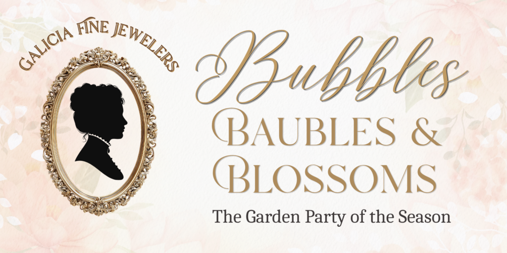 The ton is abuzz with the most delightful whisper, and it would be a scandal not to share. It appears that Galicia Fine Jewelers is preparing to host the social event of the season. On Saturday, May 2, from 11 AM to 4 PM, you are cordially invited to a garden party of unparalleled elegance: Bubbles, Baubles & Blossoms